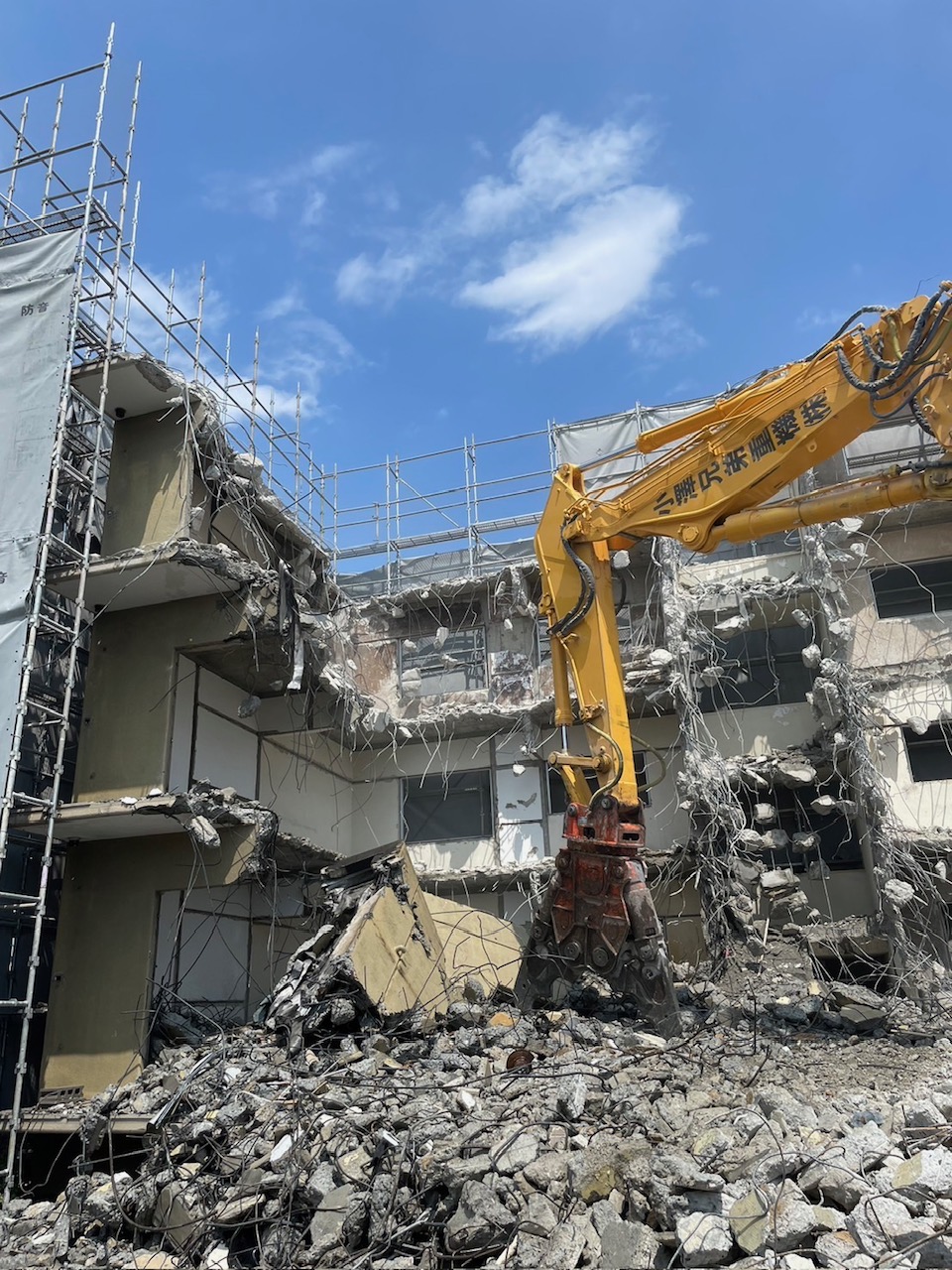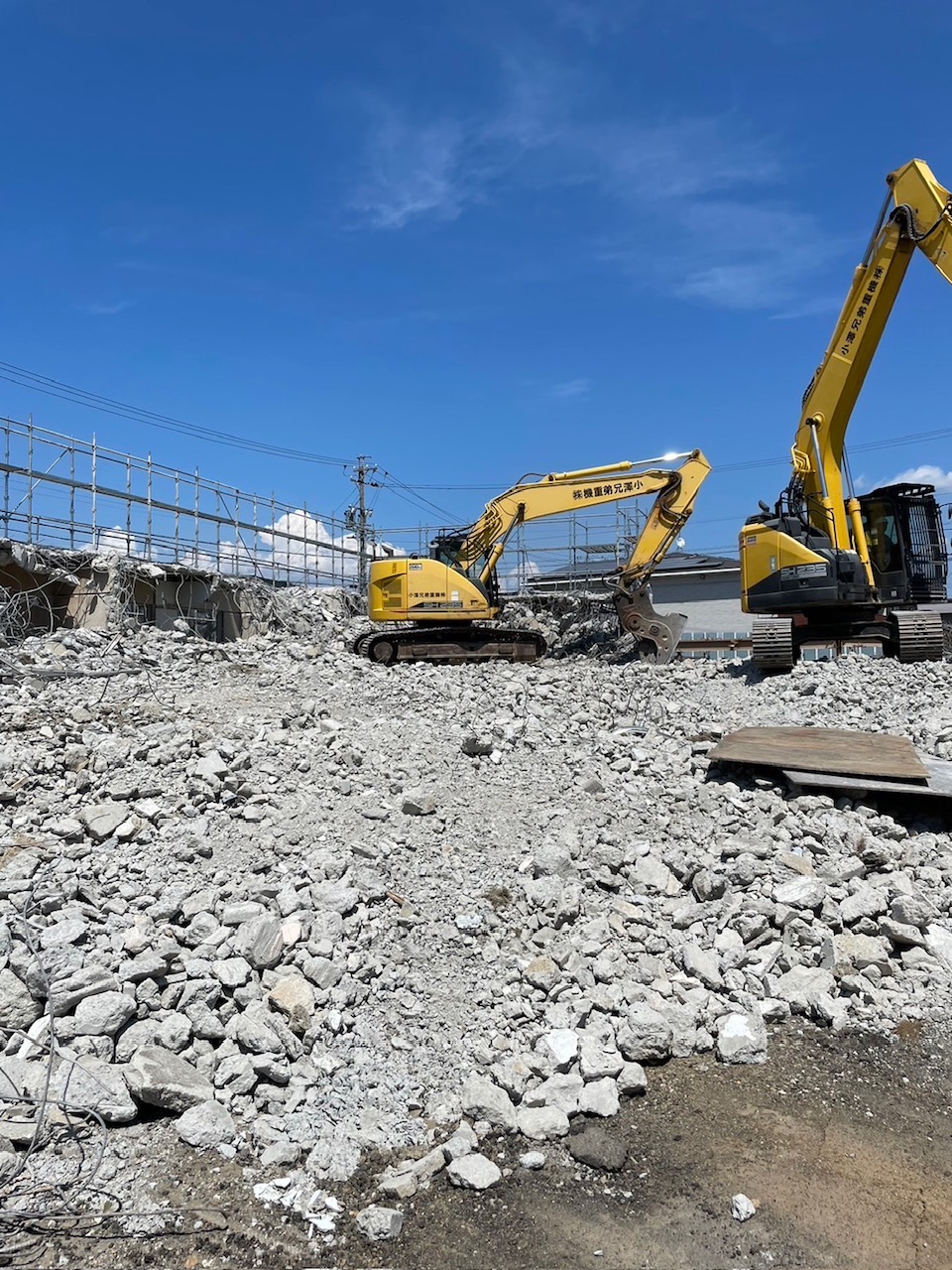 上屋がほとんど解体完了し、コンクリートガラを搬出していきます。