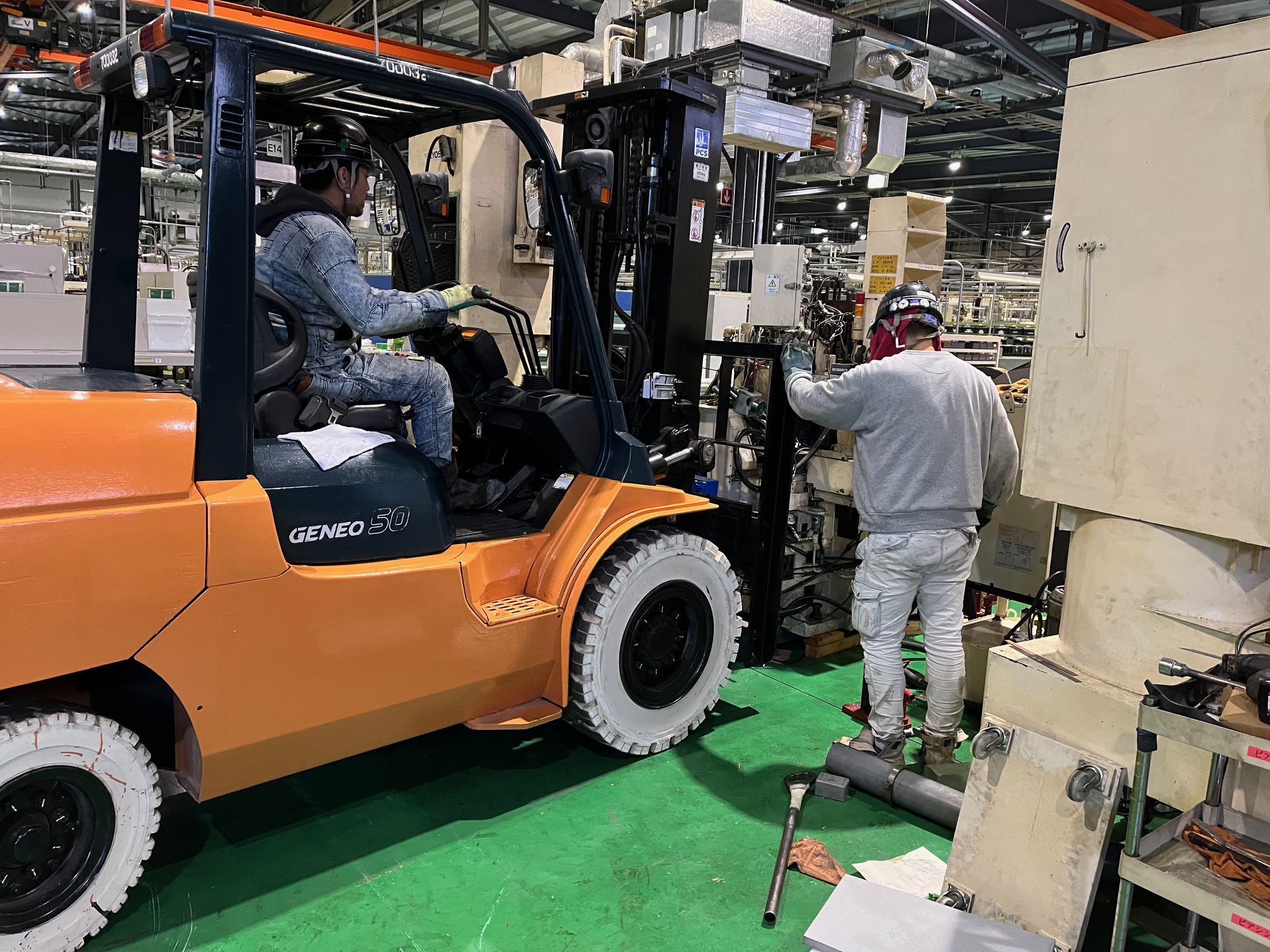 工場内にて機械の入替の為に、不要な機械を撤去しましたよ。