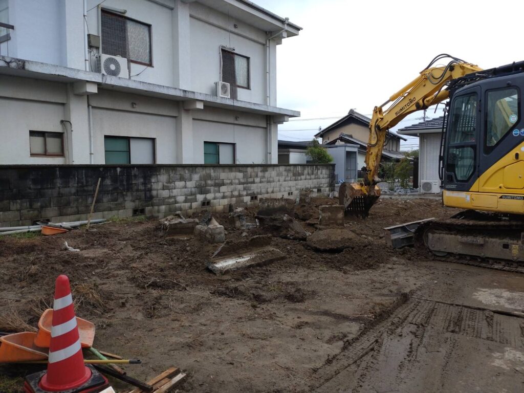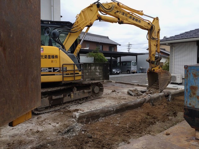 解体する倉庫までにブロック塀・庭が有って入れない為、先行して解体しました。