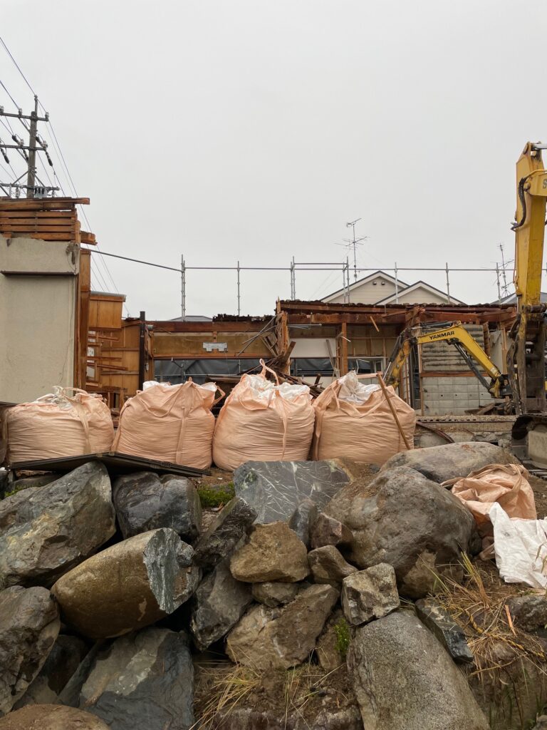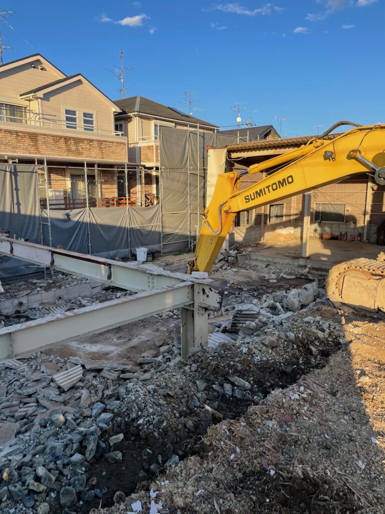 岐阜市で鉄骨の架台の上に木造2Fが乗っている建物を解体しました。